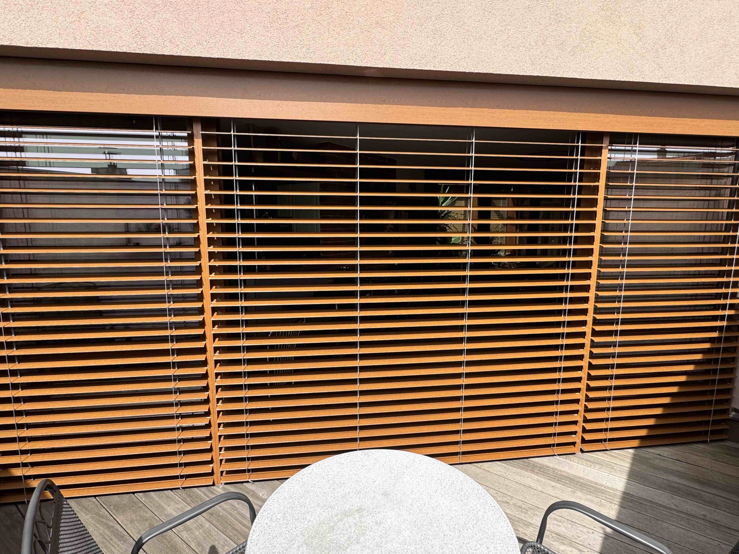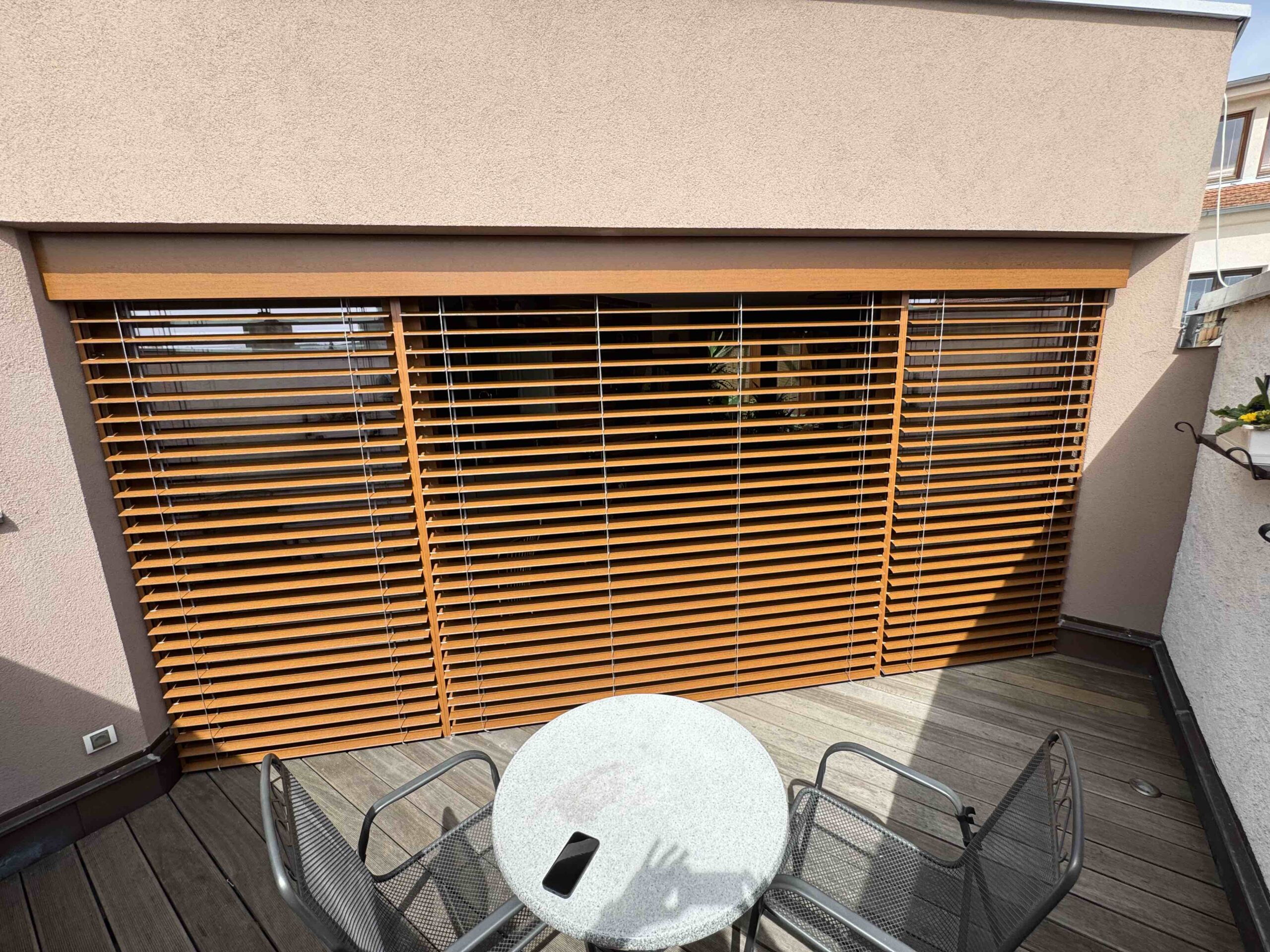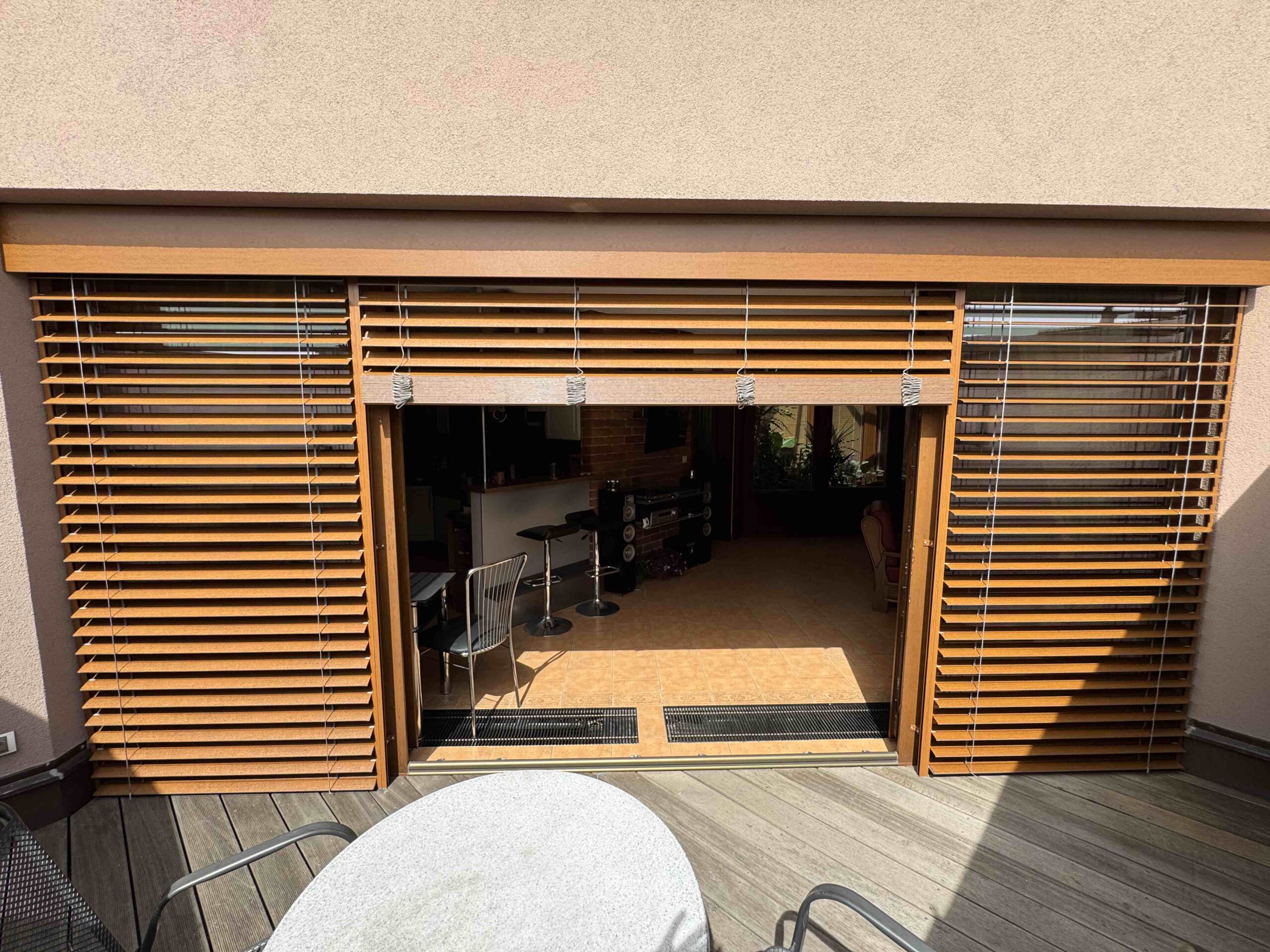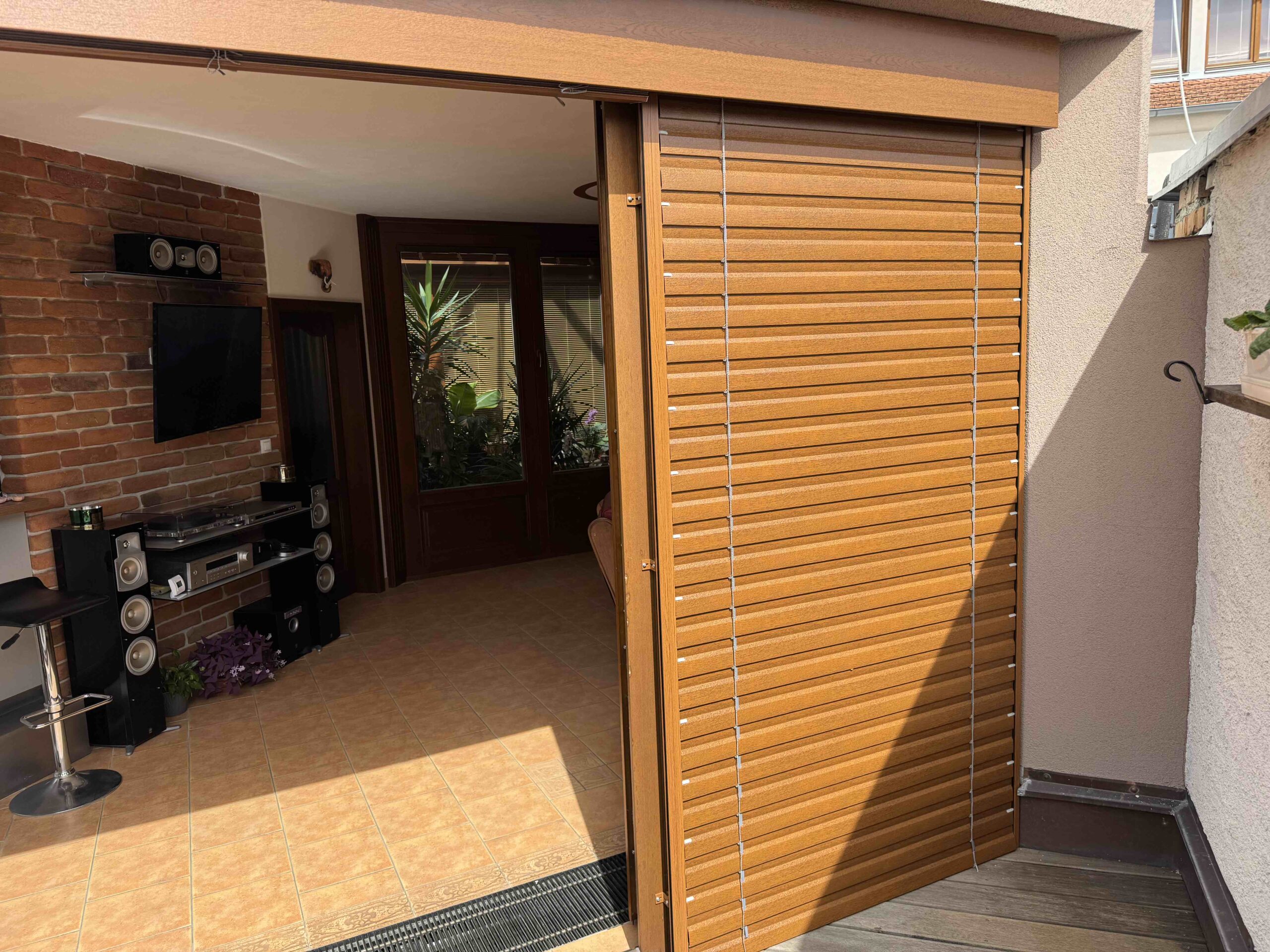 Ano, opět a již po několikáté mě oslovil můj vynikající kamarád s požadavkem zastínit jeho nádhernou terasu ve středu města Ivančice. Terasa má 5 metrů na šířku a tak jsme zastínění rozdělili na 3 kusy – 2 boky a střed , kde je průchozí vstup na terasu.