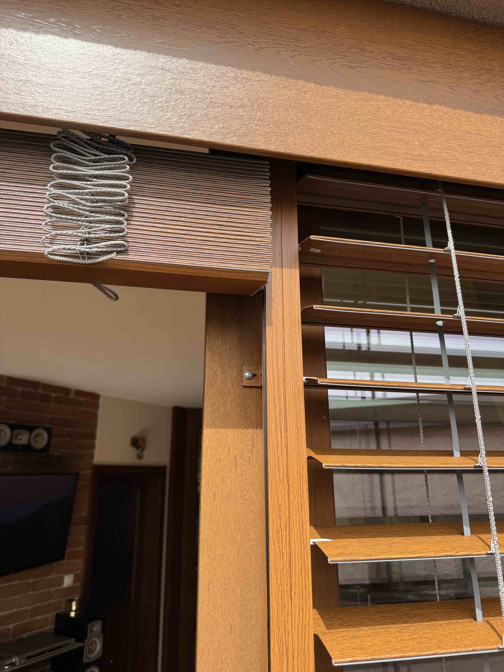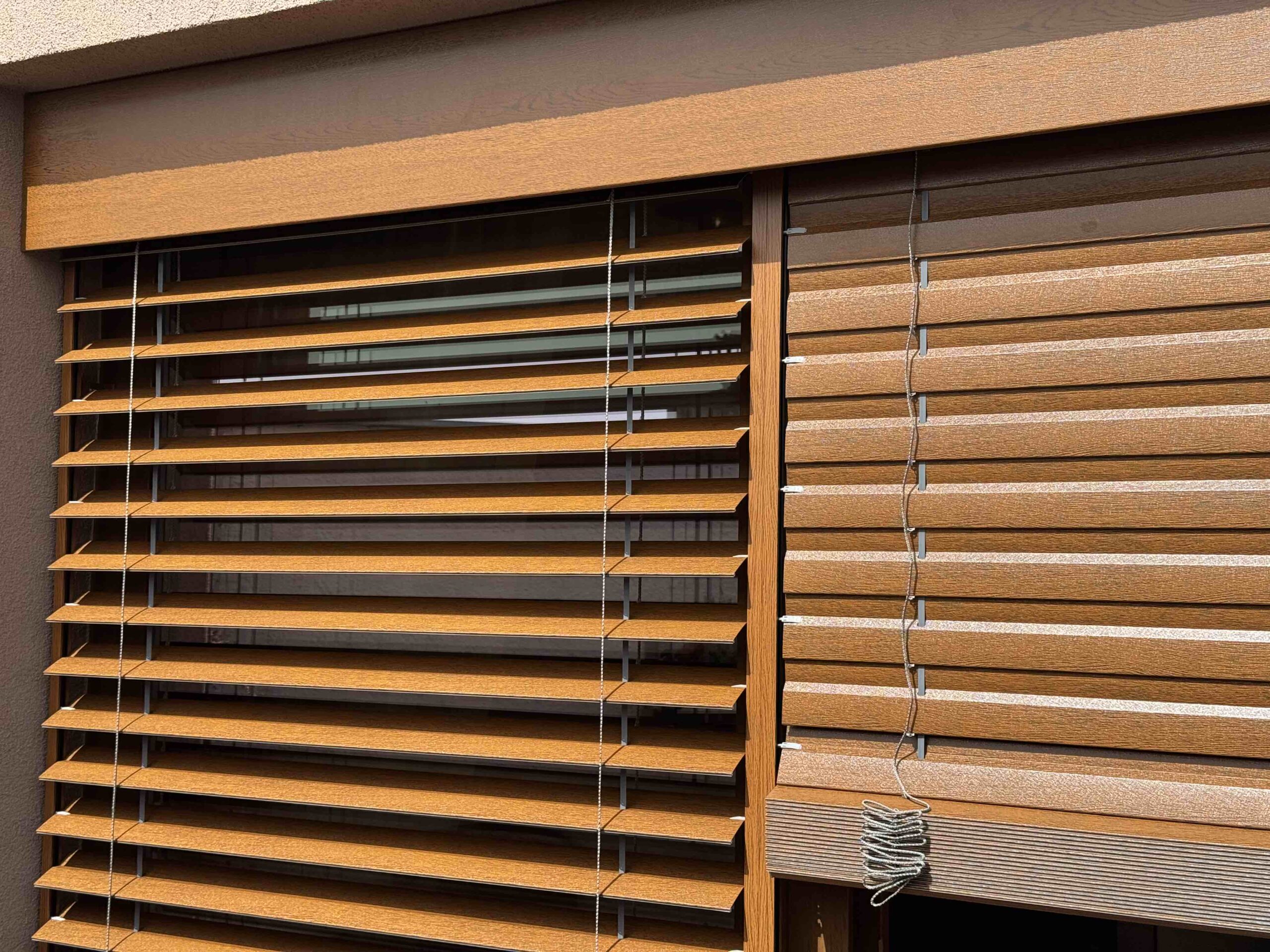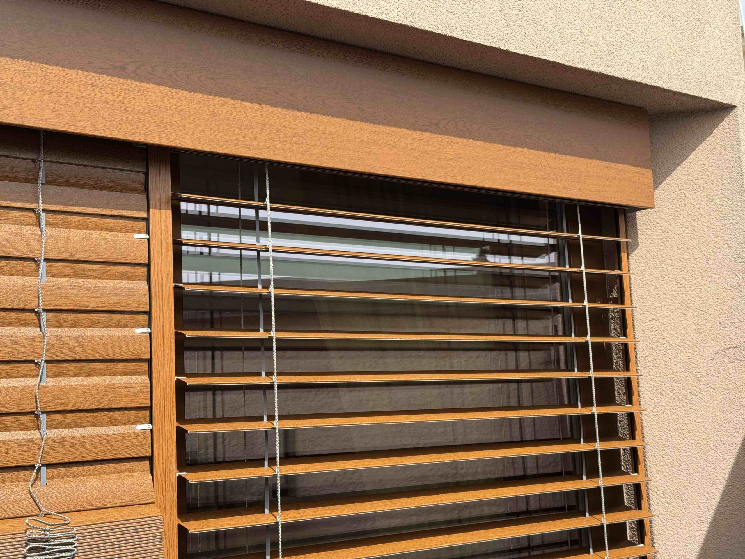 Bylo však ještě nutno vyřešit 2 věci – úprava spodních obkladů na bocích špalet ,abychom žaluzie dostali až na kraj a další výzva bylo přání zákazníka, a to krycí plech z jednoho kusu – nedělený – tedy 5 metrů šířky. Dálší oříšek byl, že špaleta je na jedné straně do pravého úhlu, avšak druhá strana je pod úkosem. Tento průsvit jsme museli vyřešit bočnicí plechu. Krycí plech jsme dostali do patra jen díky prostorné kanceláři v přízemí, vstupem do domu bychom tam plech nedostali, poté jsme se už těsně po schodišti stočili. Zakázka se povedla a pán je, jak vidno z videa, na které určtě mrkněte, opravdu spokojen.